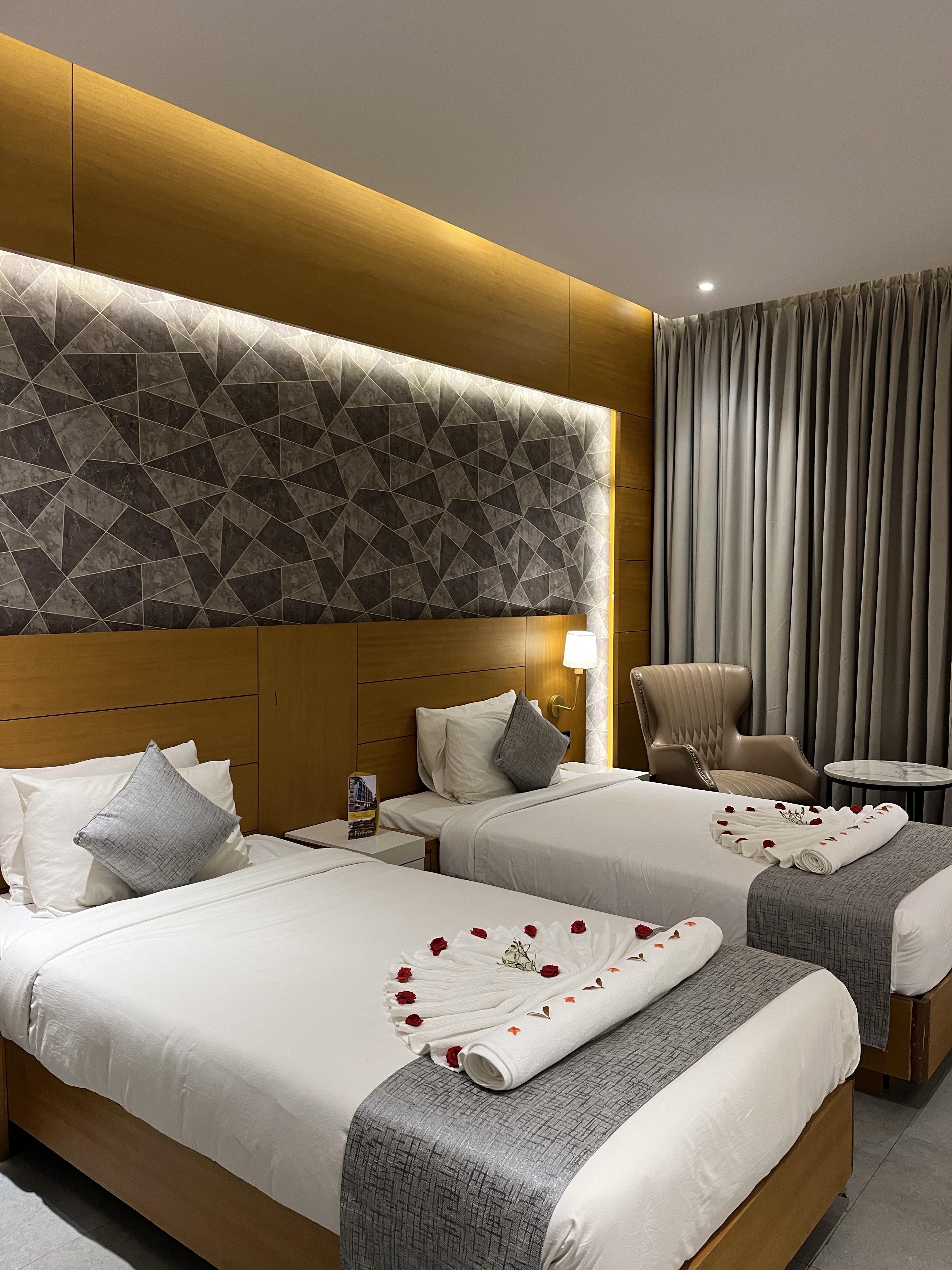 Our Deluxe Rooms are designed to offer comfort and convenience, with modern amenities in a cozy setting. The spacious bed is adorned with soft linens, and the room features a work desk, ideal for business travelers. The tasteful decor with warm lighting and muted colors ensures a calm, serene atmosphere, perfect for unwinding after a busy day.
